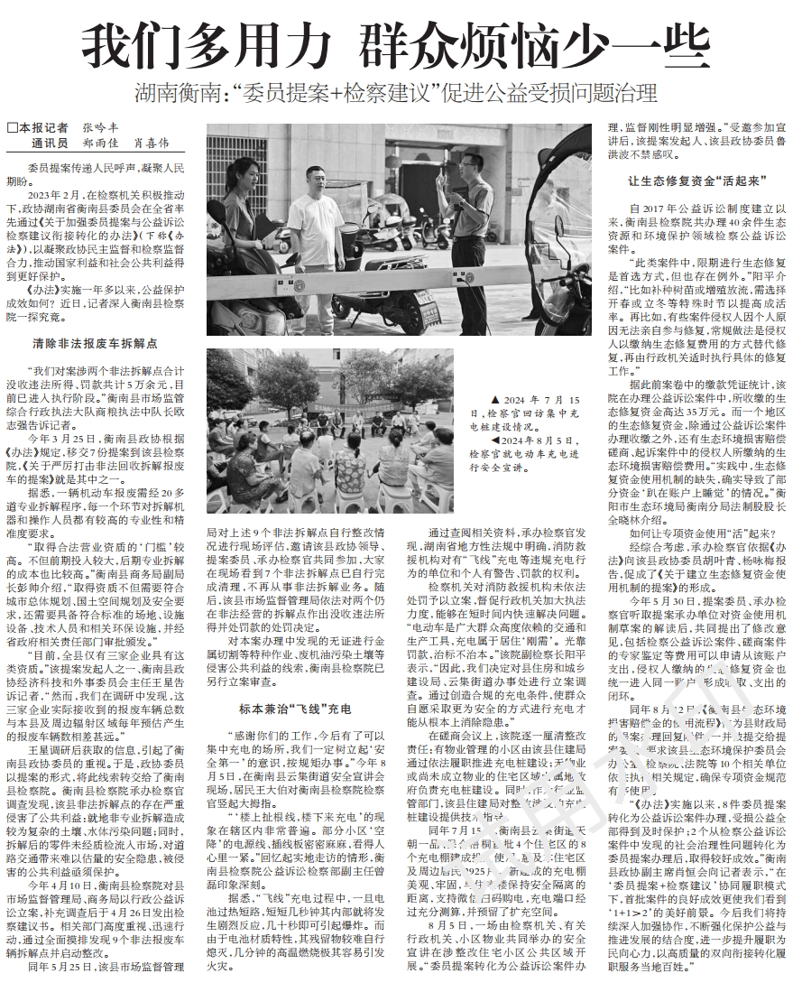 8月5日,一场由检察机关、有关行政机关、小区物业共同举办的安全宣讲在涉整改住宅小区公共区域开展。“委员提案转化为公益诉讼案件办理,监督刚性明显增强。”受邀参加宣讲后,该提案发起人、该县政协委员鲁洪波不禁感叹。