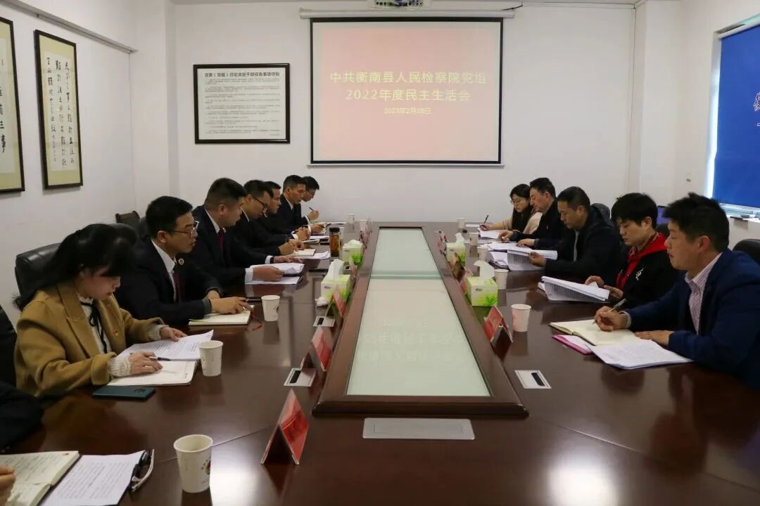 2月28日,衡南县人民检察院党组召开2022年度民主生活会。院党组书记、检察长杜丰主持会议,院领导班子成员参加。县直机关工委第四督导组组长、县委办副主任谭宁,县委政法委副书记刘瑛,县纪委监委干部监督室一级主任科员谭纯忠等到会指导并点评。