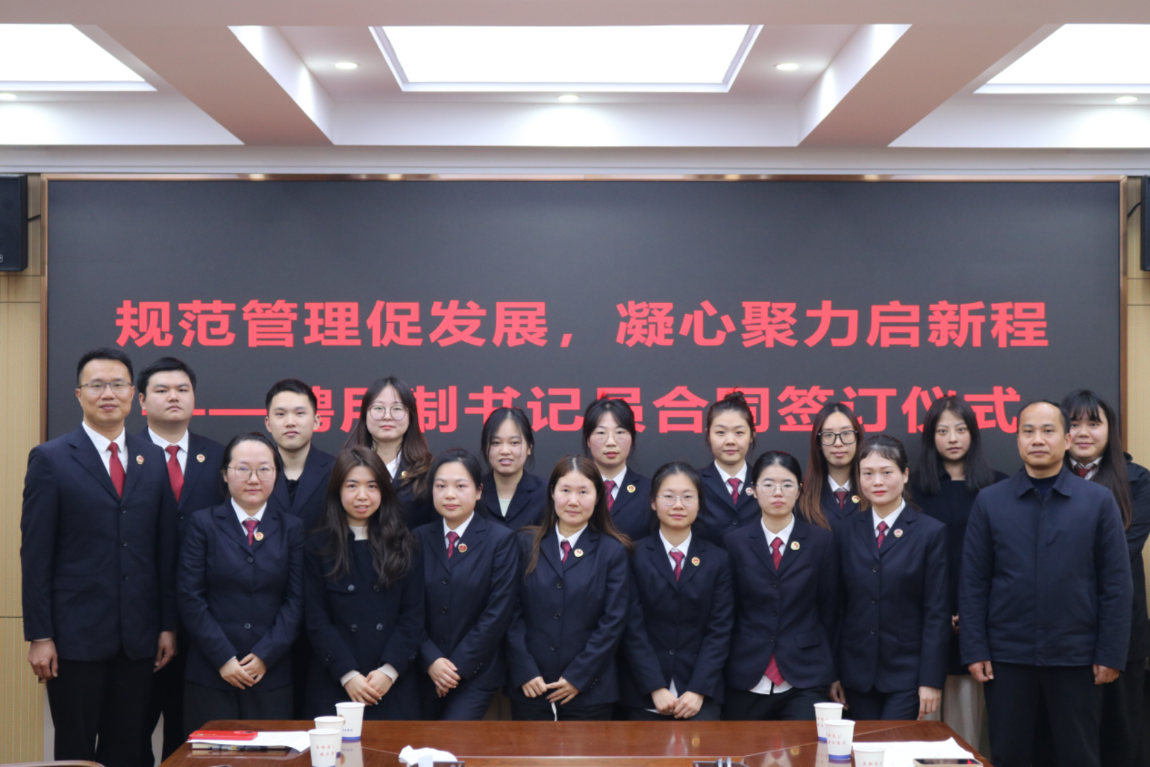 为进一步规范聘用制书记员管理,强化职业归属感与责任感,激发书记员队伍履职热情,近日,衡南县人民检察院隆重举行聘用制书记员合同签订仪式。仪式由党组成员、政治部主任谭宏军主持,党组副书记、副检察长郭飞出席仪式并发表讲话,全体聘用制书记员参加。
