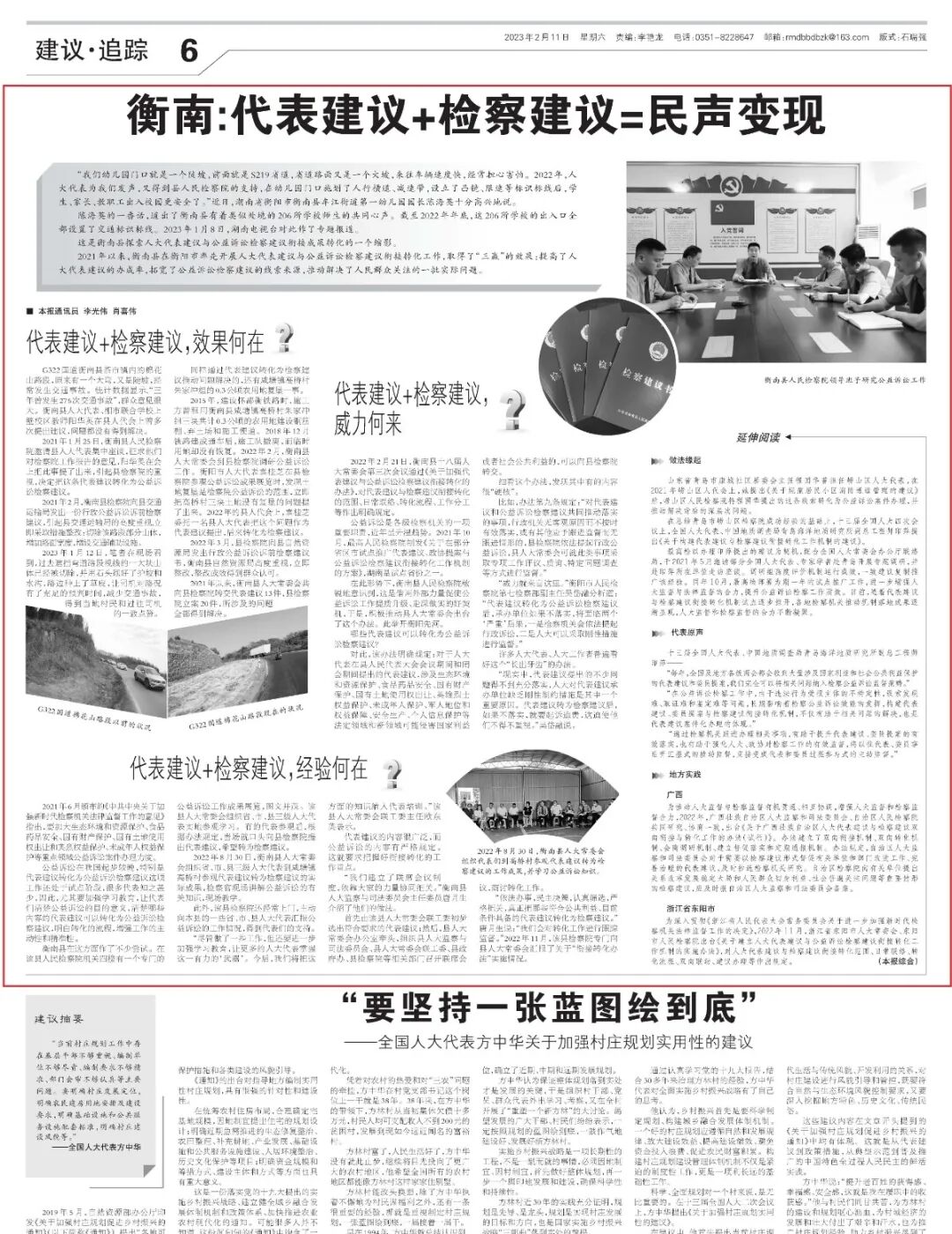 2022年2月21日,衡南县第十八届人大常委会第三次会议表决通过《衡南县人大常委会关于加强人大代表建议与公益诉讼检察建议衔接转化的办法》(简称《办法》),对代表建议与检察建议双向衔接转化的目标意义、适用范围、办理流程等内容进行明确,推动人大监督与检察监督同频共振、同向发力,形成监督合力。