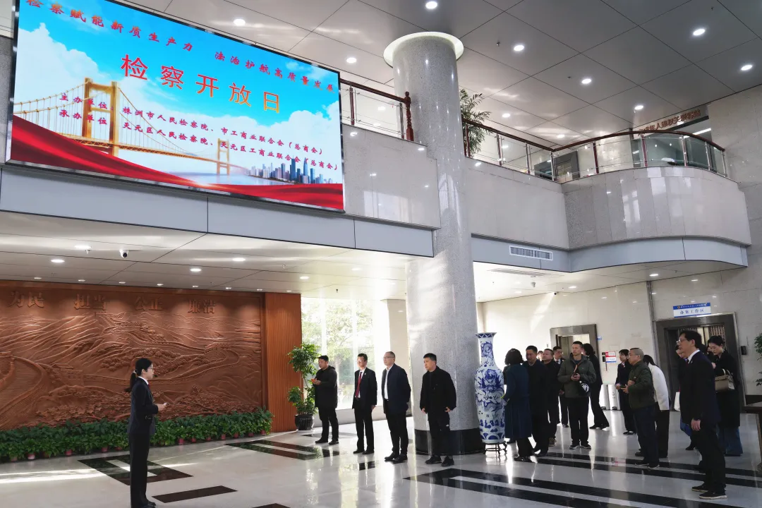 11月27日,由株洲市人民检察院、市工商联主办,天元区人民检察院、天元区工商联协办的“检察赋能新质生产力 法治护航高质量发展”检察开放日活动在天元区检察院举行。来自全市的15名企业家代表,与人大代表、政协委员、人民监督员及市、区检察院和工商联同志齐聚一堂,以“实地参观+座谈交流”的形式,共话检企协作,共商发展良策。