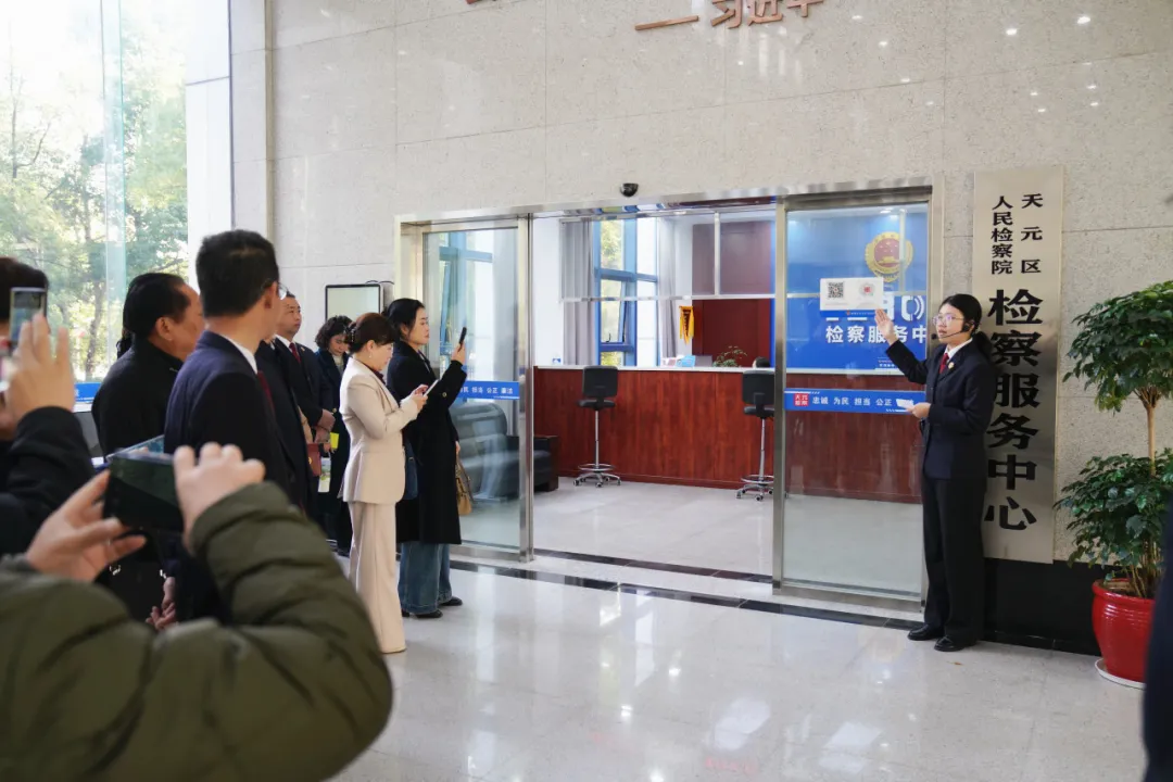 活动伊始,嘉宾们走进12309检察服务中心,详细了解案件受理、法律咨询、申诉接待等一站式检察服务流程,切身感受检察机关“便民、高效、规范”的服务理念。在“天知护”知识产权检察工作室,大家认真聆听检察干警介绍,从案件办理到普法宣传,从风险防控到权益保障,全方位了解检察机关在保护创新成果、激发企业研发活力方面的具体举措